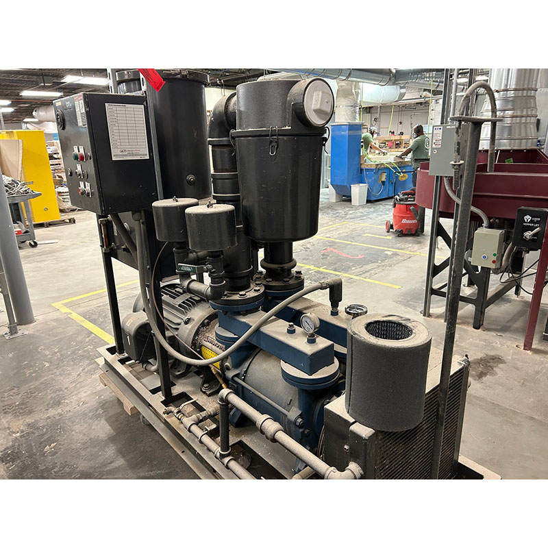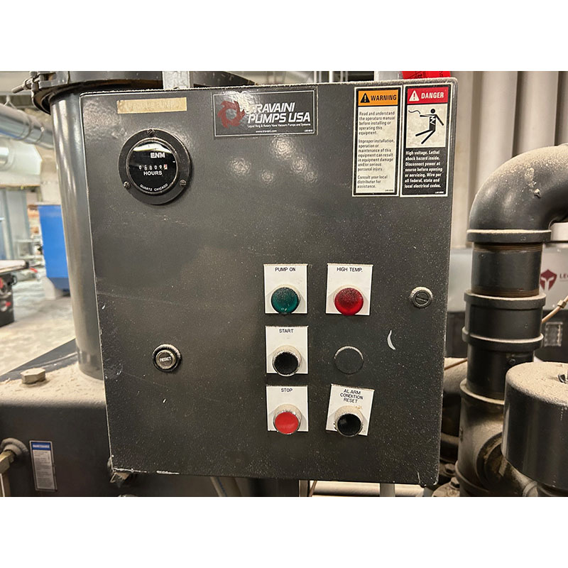 Used Travaini 40HP Heavy Duty Vacuum Pump, 480volts, magnetic controls, 29” pressure, fully reconditioned, all new filters, 2000lbs., fob Billerica, in stock