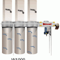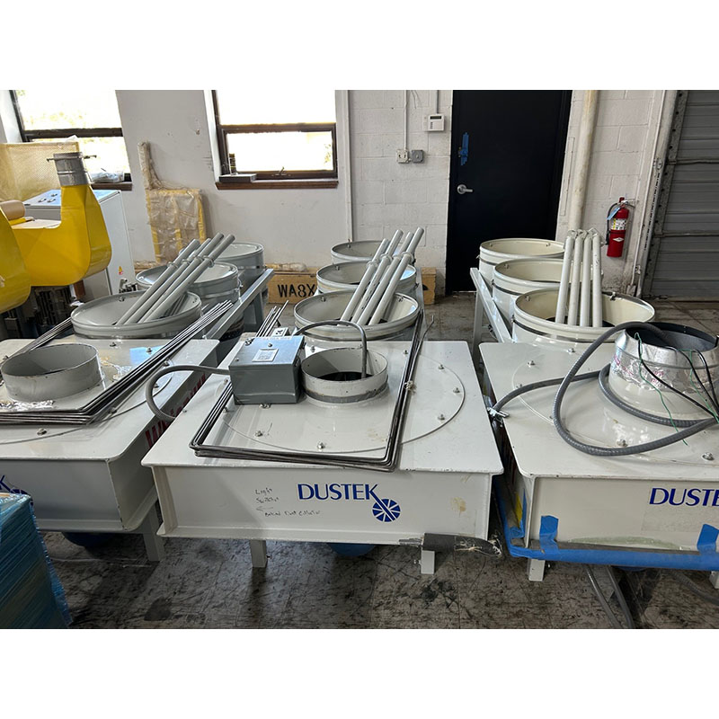 Used Dustek Model W1000 dust collector with 10HP 3phase 208-230/460volt motor, 3-NEW upper cloth filter bags, 3-lower plastic collection bags, 4000cfm volume, 12” dia. inlet, very quiet, 1200lbs., fob Billerica, In stock