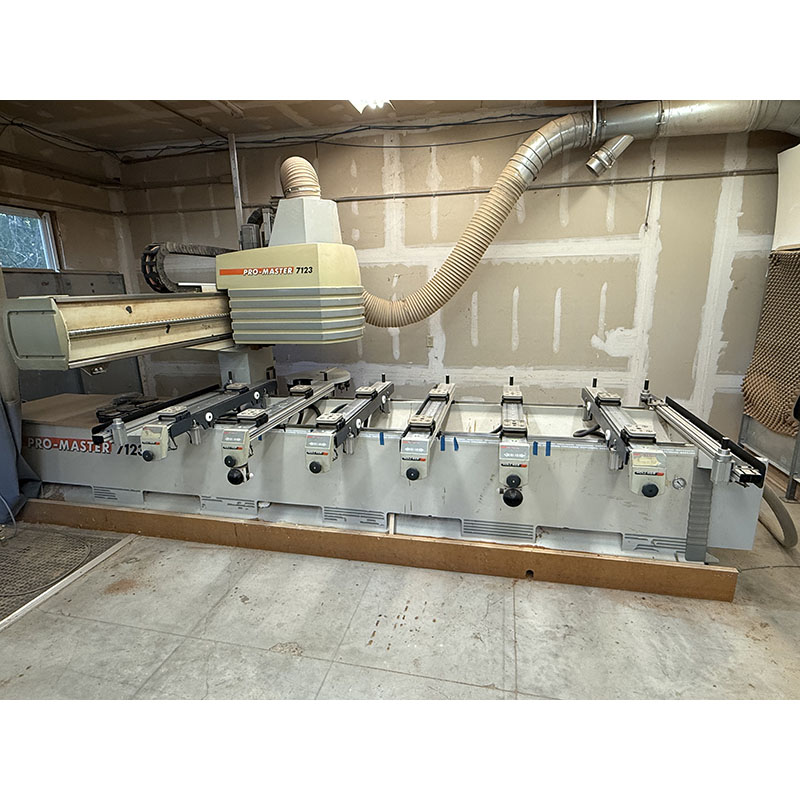 Used HolzHer Pro Master 7123 CNC machining center, Year 2006, 460volts, 21HP liquid cooled spindle, HSK 63F tool holder, ride along tool changer, 6 independent rails, rack and pinion X, Ball screw in Y and Z, safety mats, Twin Cam software, remote handheld control, Benz aggregates, 7500lbs., fob Maine, available